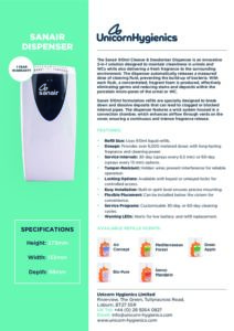 El sistema definitivo para la higiene total en baños públicos y comerciales. Este dispensador automático de goteo continuo trabaja 24/7 directo en la tubería para higienizar, desodorizar y prevenir las incrustaciones de cal y ácido úrico en inodoros y urinarios. Mantiene el ambiente con un olor fresco y a limpio de forma constante.