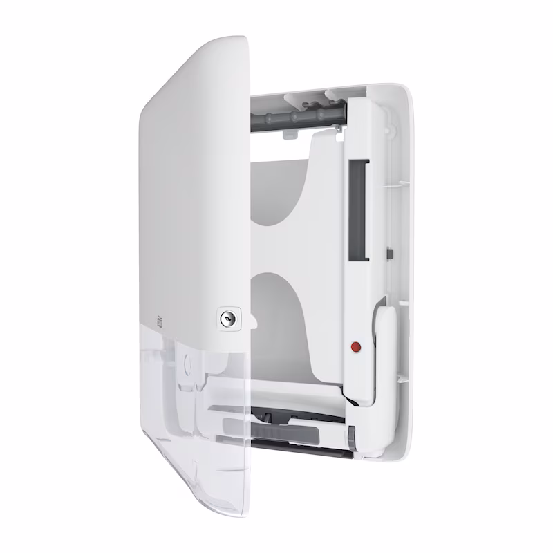Nuestra última innovación diseñada para aseos de mucho tránsito en los que el personal debe maximizar el tiempo de limpieza y mantener un buen flujo de personas. Este sistema, compatible con el dispensador de toallas de mano en continuo Tork PeakServereg, tiene una capacidad muy alta y ofrece más de 1230 toallas, que pueden dispensarse rápidamente y sin interrupciones para mantener el flujo. Los recambios prensados se colocan rápidamente, se pueden reponer en cualquier momento y son fáciles de almacenar y transportar, para que el personal pueda centrarse en la limpieza y no en las reposiciones.