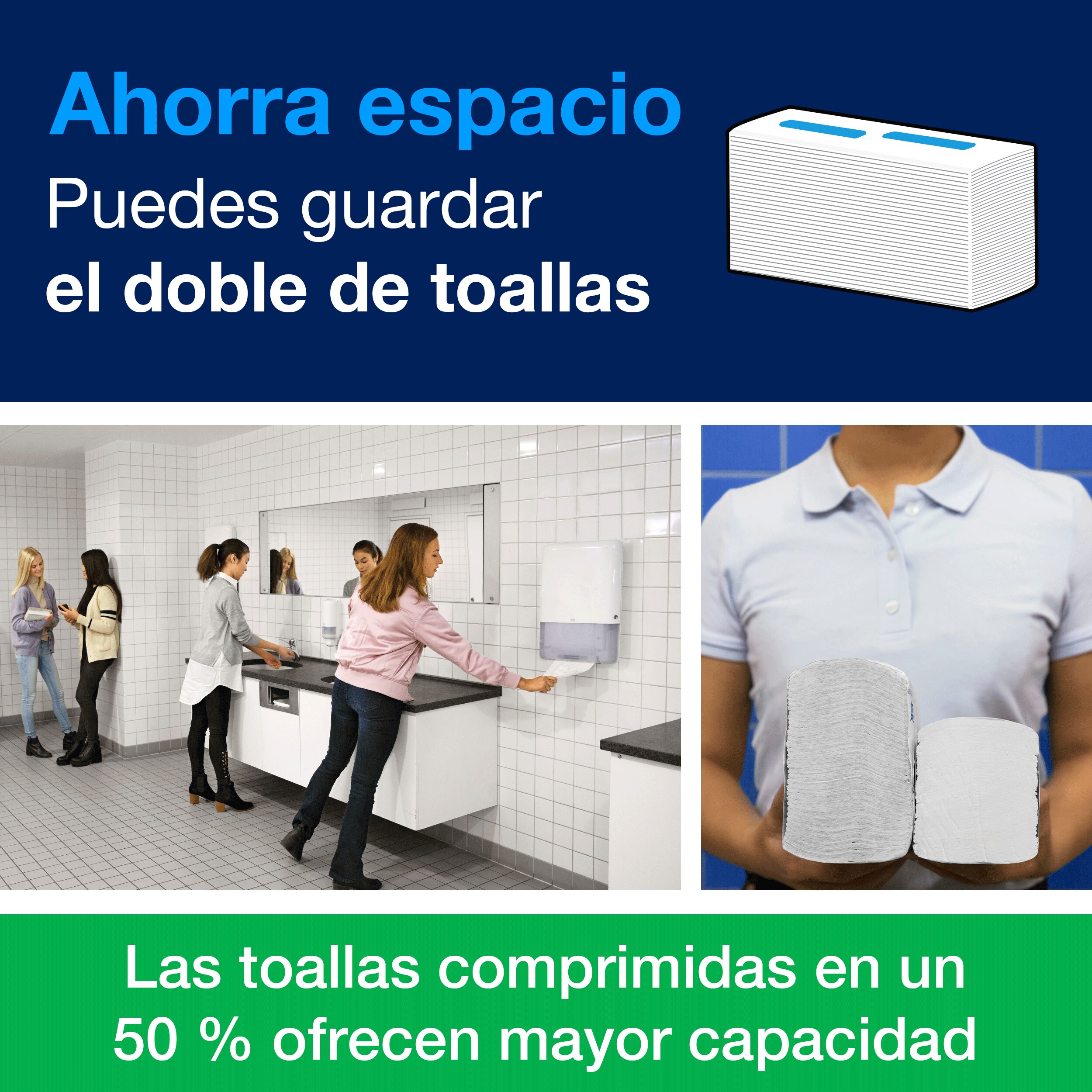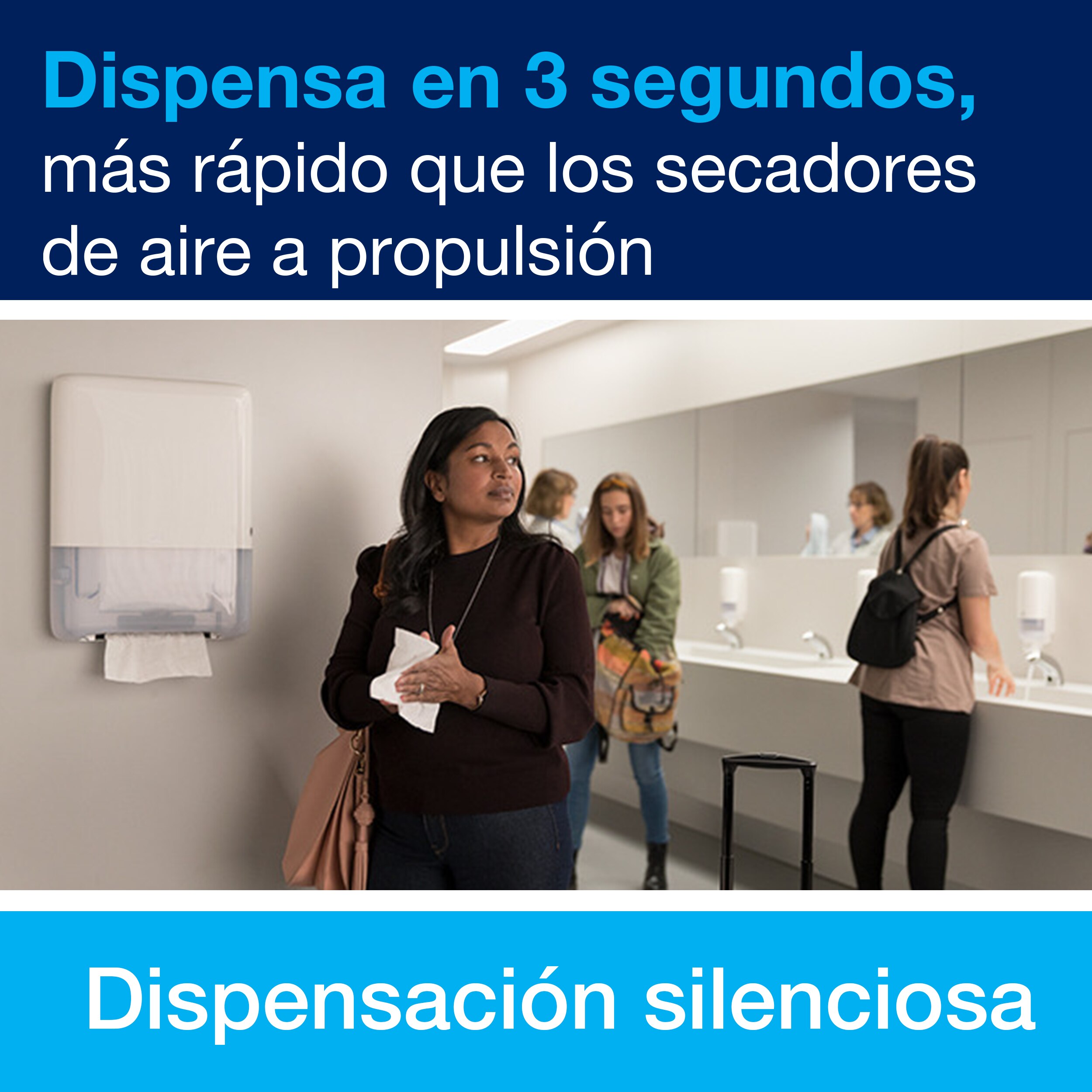 Nuestro dispensador mini toallas en continuo garantiza un servicio impecable en baños con muchísimo tránsito (como estadios, centros comerciales o aeropuertos) que suele ser todo un desafío, y la situación se complica aún más cuando esos baños son pequeños. Este dispensador mini toallas en continuo nace para solucionar ese problema exacto.