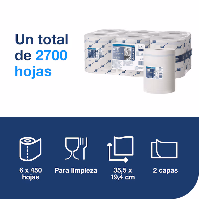 • Es un papel suave, resistente y absorbente, a la vez que ofrece un secado más eficaz y genera menos residuos