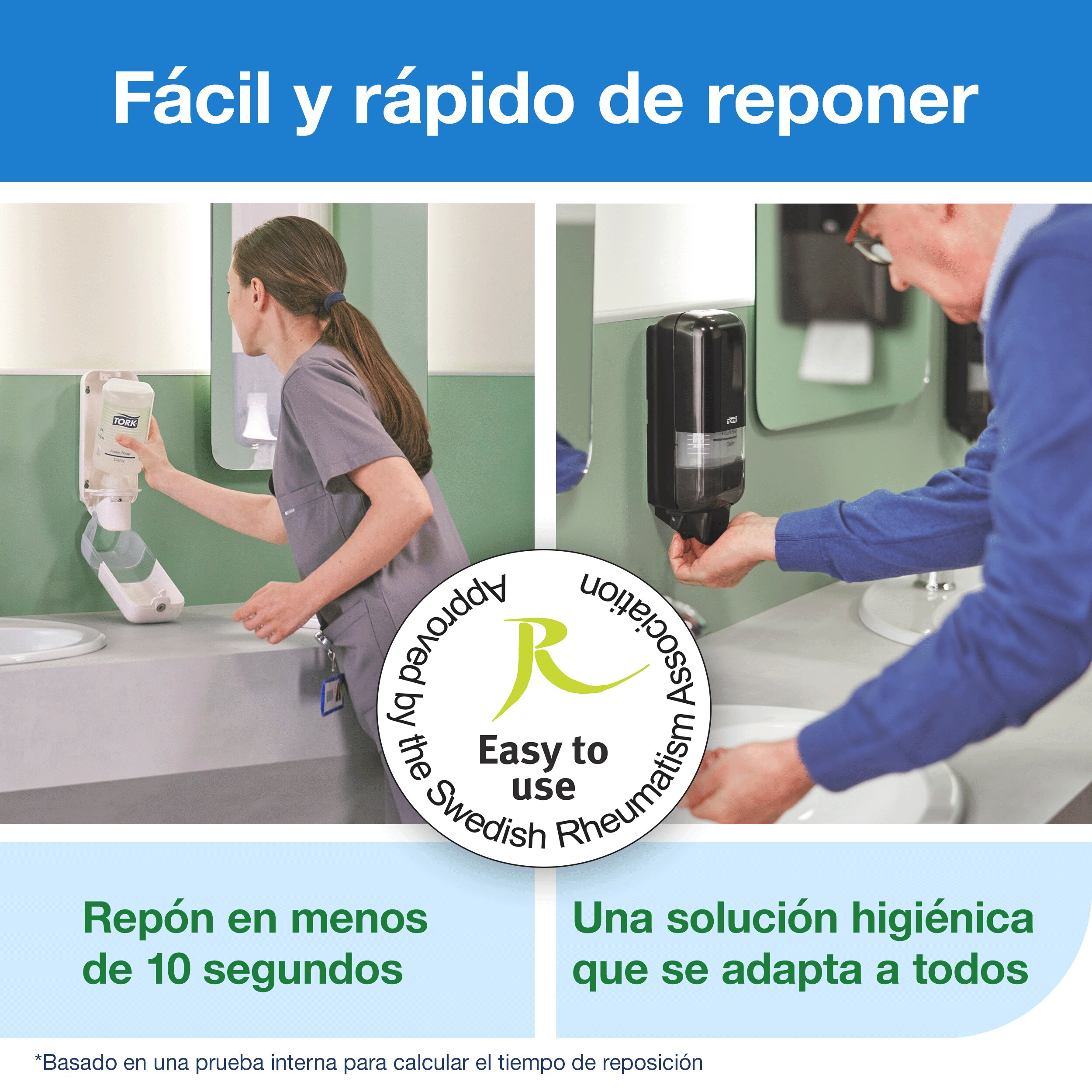 El gran argumento de este recambio jabon en espuma suave es su durabilidad. Al estar precargado con aire en cada pulsación, su contenido de 1 litro rinde el doble que un cartucho tradicional, entregando hasta 2.500 dosis exactas. Esto significa que tu personal de limpieza tendrá que rellenar los dispensadores con mucha menos frecuencia, optimizando sus horas de trabajo.