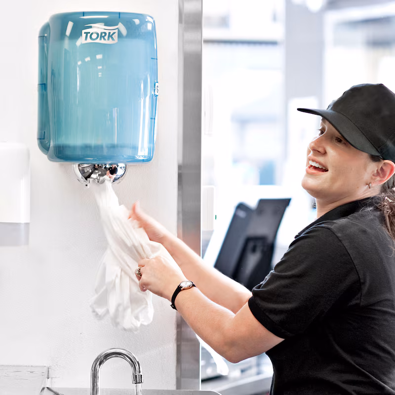 Para facilitar el trabajo al final de la jornada, el sistema de recambio es extremadamente intuitivo. El tubo de montaje permite sustituir las bobinas gigantes vacías por unas nuevas en cuestión de segundos, reduciendo al mínimo el tiempo de inactividad y garantizando que tu equipo siempre tenga material de limpieza listo para la acción.