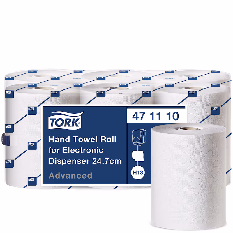 Las toallas de mano en rollo aumentan la capacidad de los dispensadores electrónicos para garantizar la disponibilidad del papel, por lo que son una opción ideal para aseos de mucho tránsito, como centros educativos y aeropuertos. Los rollos se pueden utilizar con el dispensador electrónico de toallas de mano, que ofrece una dispensación individual para reducir el consumo y mejora la higiene.