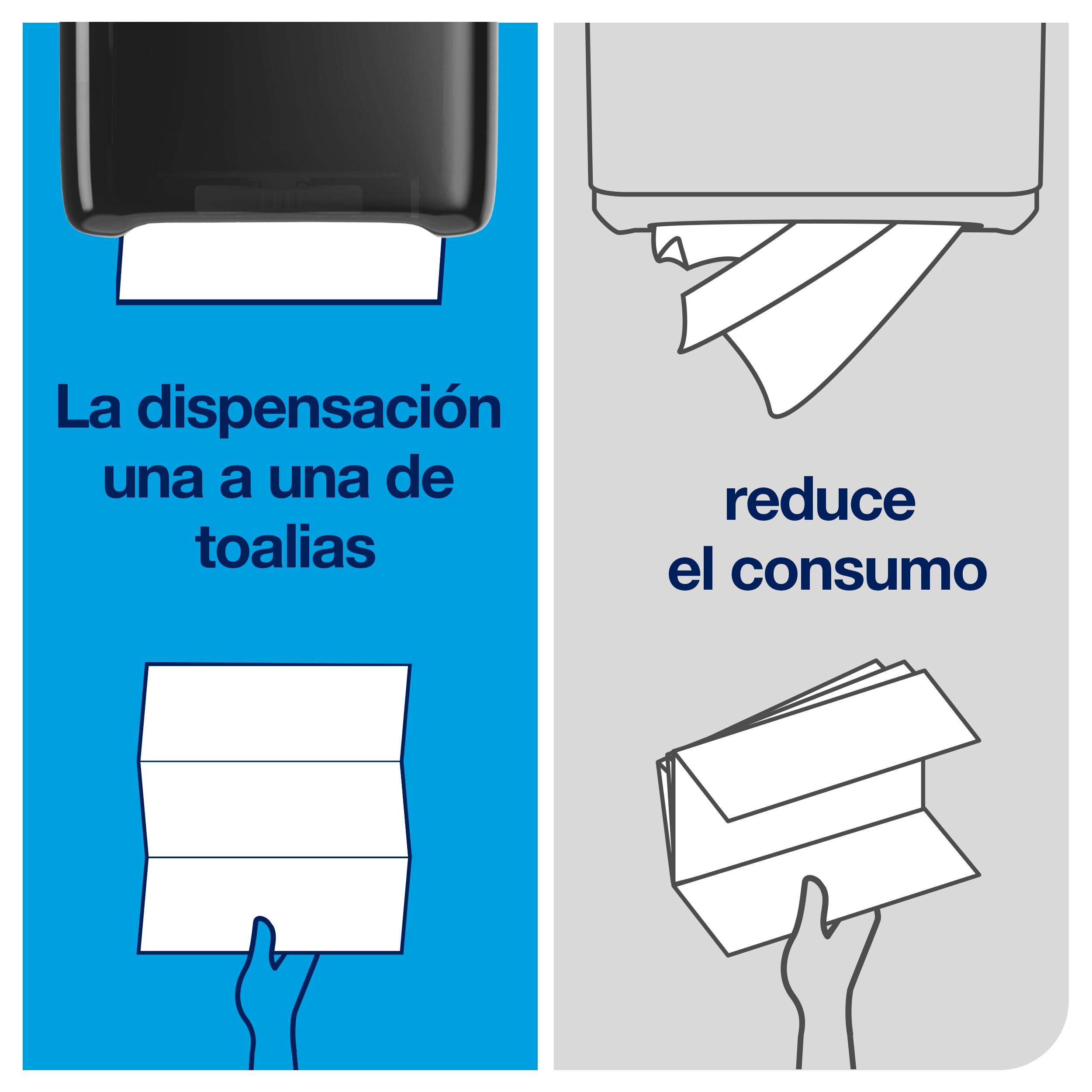 Están diseñadas con un sistema de plegado inteligente y prensado. Las toallas se unen a la perfección para crear un flujo constante de celulosa de principio a fin. El usuario tira del papel, se lleva su hoja individual y la siguiente queda lista al instante, permitiendo un secado rápido, ordenado y sin ningún esfuerzo.